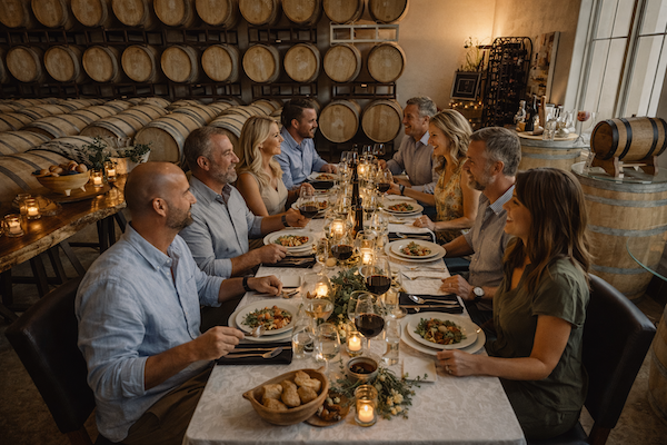 Surrounded by aged barrels and candlelight, guests will enjoy a thoughtfully crafted multi-course dinner paired with carefully selected wines designed to enhance each dish. The experience is personally hosted by the chef and the winery owners, creating an atmosphere that is both elegant and warmly inviting.